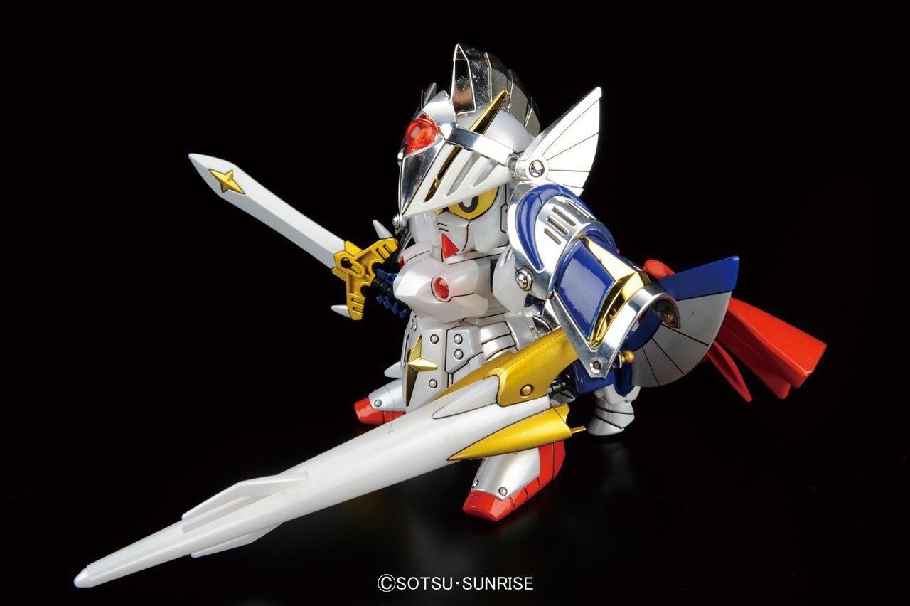Un design aggiornato per uno dei personaggi originali di SD, il Versal Knight! Questo classico personaggio di SD Gundam presenta parti placcate in argento e oro per una finitura brillante. Include lancia elettromagnetica, spada Versal, fodero, cavaliere volante e mantello.