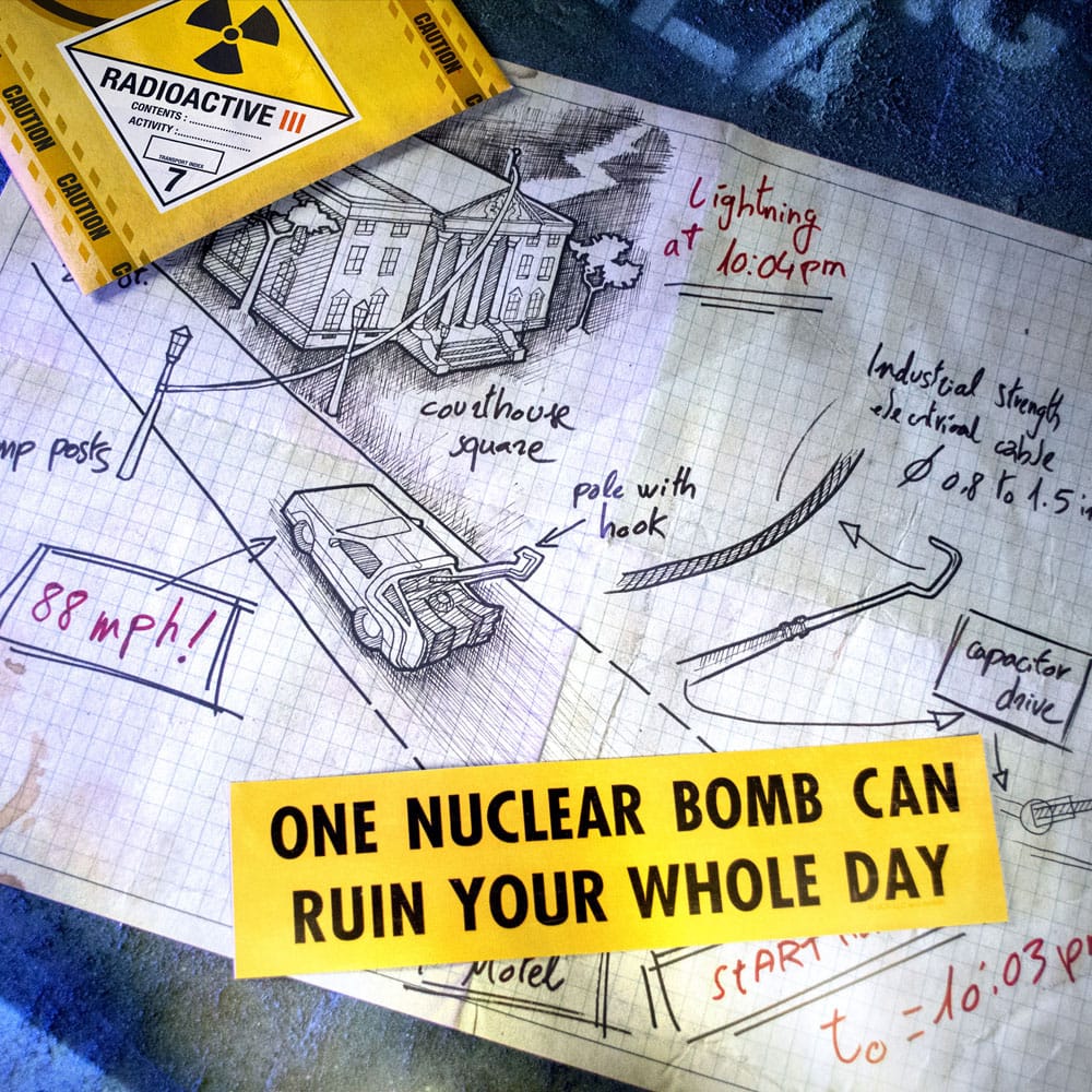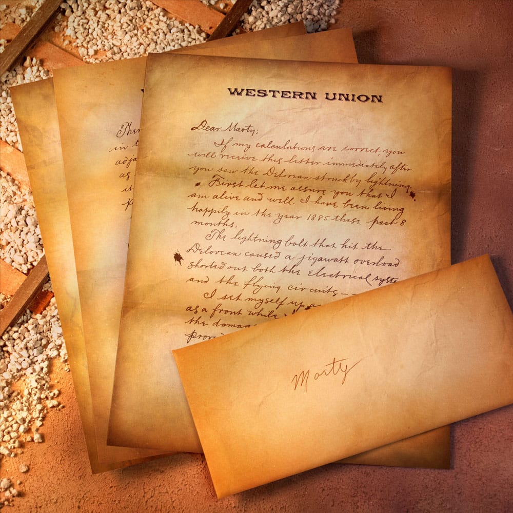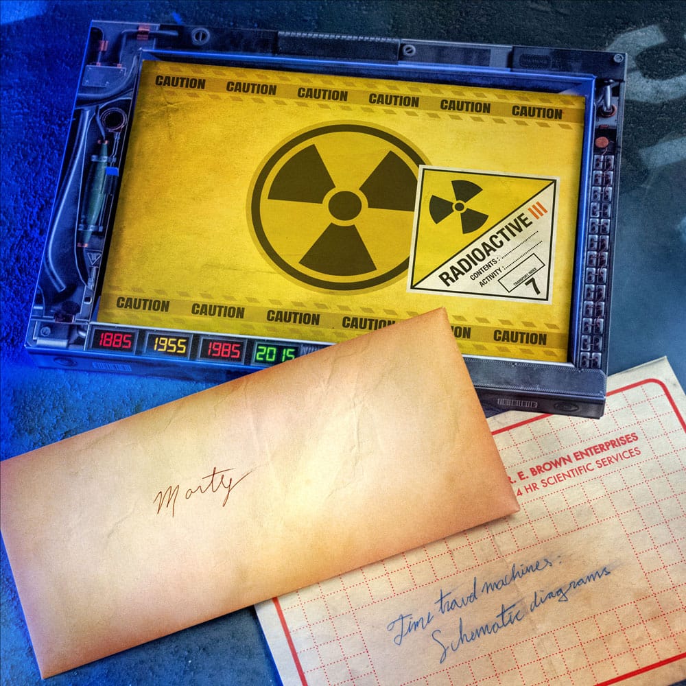 Great Scott! Just when you thought your 'Back to the Future Kit' couldn't get any better, here comes "Time Travel Memories II - Expansion Kit "! Dive deeper into the Doc and Marty time travel adventure with new, never-before-seen memorabilia! Don't miss out on this expansion pack. Your future self will thank you! This kit contains: 1. Radioactive III envelope: Clock tower lightning plan scheme, Hill Valley festival newspaper clipping, George McFly honored newspaper clipping, Used cars Delorean ad, One nuclear bomb sticker, Einstein's metallic dog tag, The Pinheads holographic guitar pick, Copernicus photo, Einstein photo, Welcome to Hill Valley postcard, Phone book sheet with Doc's address, Clock tower photo, Biff Tannen's pleasure paradise pin badge. 2. Dr. E. Brown Enterprises envelope: 1885 Time train machine blueprint, 1985 Delorean blueprint, 2015 Delorean blueprint. 3. 1885 Envelope: Doc's letter to Marty temporarily sold out
