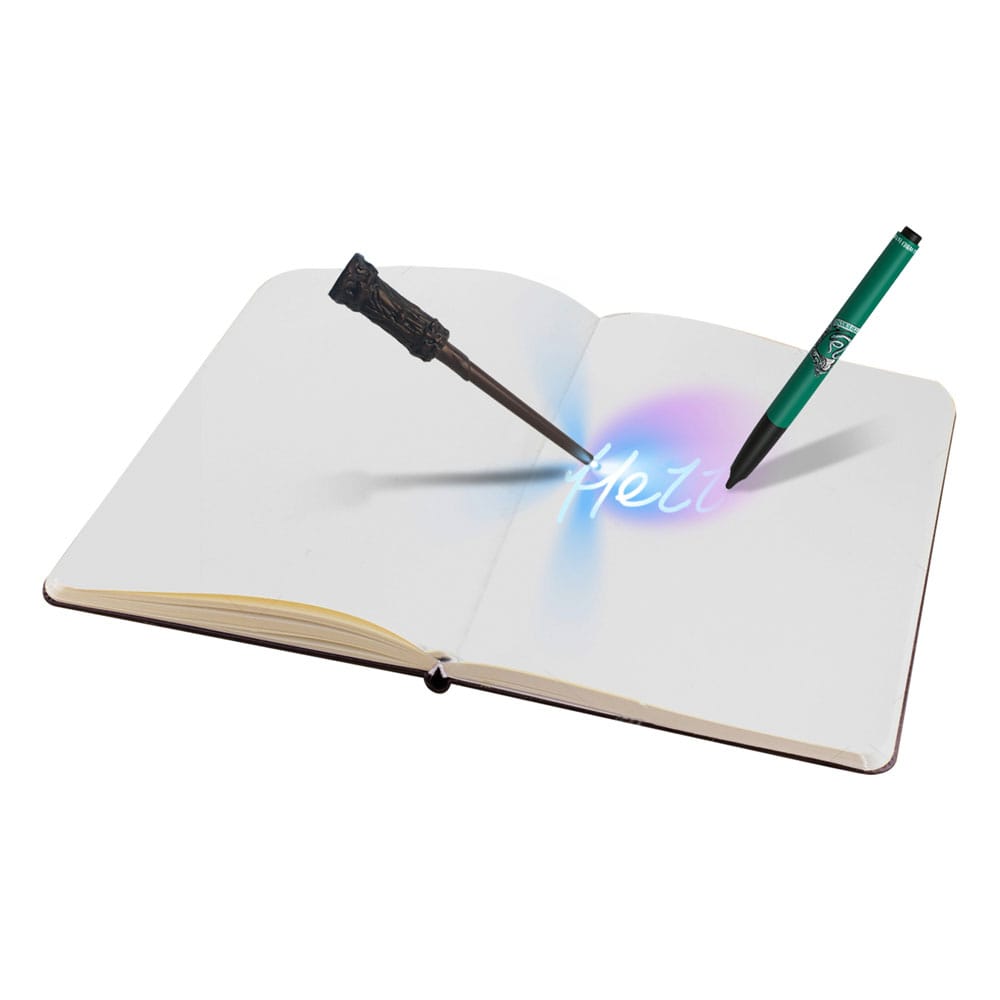 Ogni fan di Harry Potter sa cos'è il Diario di Tom Riddle e cosa ha a che fare con la Camera dei Segreti. Il set comprende un'agenda vuota con il look del film che ogni fan può compilare da solo. La scrittura avviene con inchiostro invisibile che diventa nuovamente visibile solo se osservato sotto la luce UV. La penna e la lampada UV con design a bacchetta magica sono già incluse. Pensieri segreti, messaggi misteriosi o le scene più emozionanti del film? Caratteristiche: - Diario vuoto nel design del film - Include una penna con inchiostro invisibile e una bacchetta magica con luce UV - La scrittura è resa visibile dalla luce UV - Età consigliata: dai 6 anni in su - 3 batterie LR41 incluse