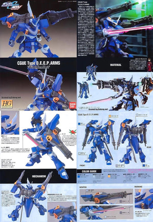 Una variante dei Mobile Suits del tipo Cgue, con "D.E.E.P. Arms" - molta potenza di fuoco aggiunta al modello base! Stampato interamente a colori, con assemblaggio a scatto; viene fornito con polycaps per le articolazioni e adesivi per aggiungere dettagli.