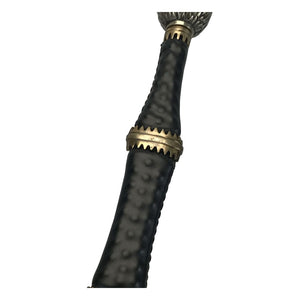 Each replica has been created using similar traditional techniques to the original hero prop, including lost-wax casting. Similar materials have also been chosen including wood, leather and metal. To replicate the appearance of the Damascus steel blade used on the hero prop, the Factory Entertainment team elected to use high quality En42 spring steel with a pattern that has been chemically etched into the blade.