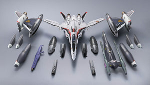 Per la serie anime "Macross Frontier" arriva questa fantastica action figure completamente articolata in ABS, PVC e metallo della serie "DX Chogokin" di Tamashii Nations. La figura è alta circa 25 cm e viene fornita con accessori aggiuntivi.