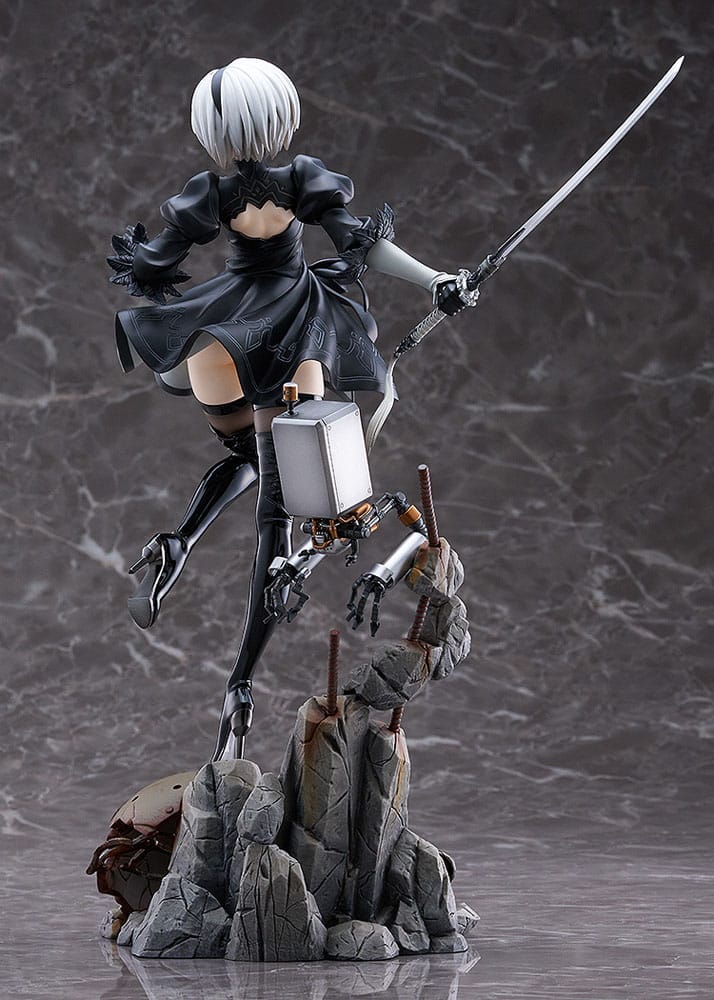 "Le emozioni sono proibite". Dall'anime "NieR:Automata Ver1.1a" arriva una figura in scala 1/7 del soldato YoRHa 2B. 2B è stato scolpito in una posa dinamica con il Contratto Virtuoso in mano, appollaiato in cima alle macerie causate da una feroce battaglia con una Macchina. È stata prestata molta attenzione ai dettagli della figura, come la scolpitura del fisico snello ma forte di 2B, la finitura opaca dell'abbigliamento e la lucentezza degli stivali. Anche la base è ricca di punti di interesse visivo, come le parti della Macchina e il Pod 042. Assicuratevi di aggiungere la forte e bella 2B alla vostra collezione.