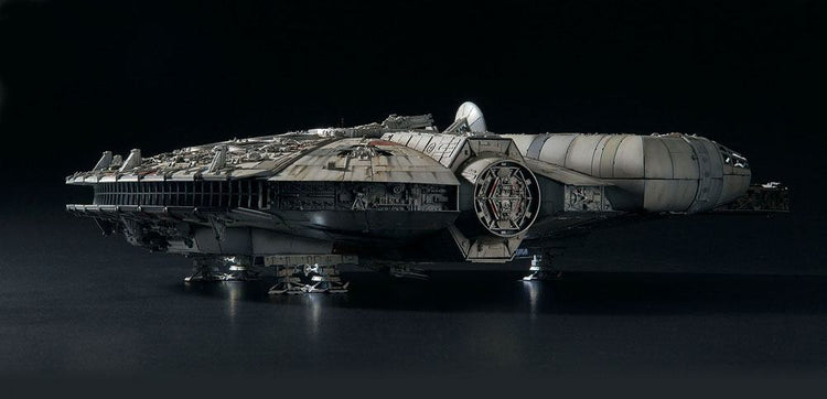 The Millennium Falcon, as seen in the celebrated first 1977 film "Star Wars: A New Hope" joins the "Perfect Grade" series, Bandai's flagship line of ultra-detailed plastic model kits. Designed with total accuracy in mind, the kit is based on thorough research of the 1.7M studio model used in the film. It features various LED light-up functions and comes with 6 figures as well as a display stand and decals. Features: - 1/72 scale snap fit kit - Parts: 680 - Length: 48,2 cm - No gluing required - Multicolor parts with decals - LED Light-Up functions - 6 figures (Han, Luke, Leia, Chewbacca, Obi-Wan and C-3PO) - Display Stand product on pre-order with a fixed date (July 2025)
