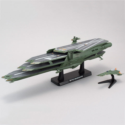 Parte della Grande Flotta Astro Imperiale Garmillas in "Space Battleship Yamato 2199", la portaerei Balgray con più ponti di volo riceve ora un kit di modellismo estremamente dettagliato da Bandai! Stampata in verde e grigio, include decalcomanie per la marcatura, uno squadrone di 21 Debakke e 21 Snuuka da trasportare e un supporto espositivo. È incluso anche un kit Debakke in scala Mechanic Collection! Un altro trionfo per Bandai!